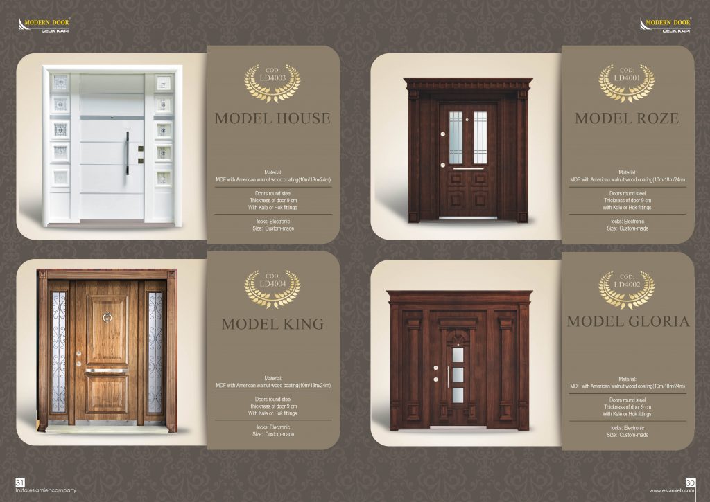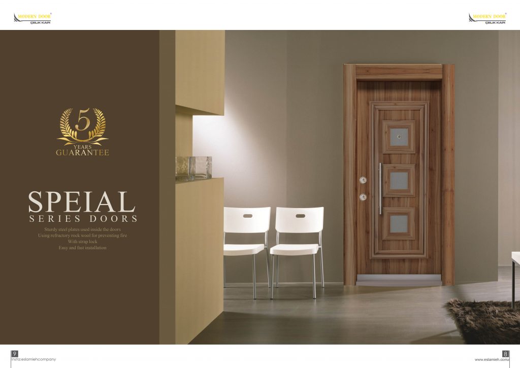 -دربهای ضد سرقت این بازرگانی با رویه MDF ده میلی متری ترک با رنگ پلی اورتان- قفل و یراق آلات کاله و یا قفل های معتبر ایرانی با ۵ سال ضمانت و دارای قفل پستچی می باشد